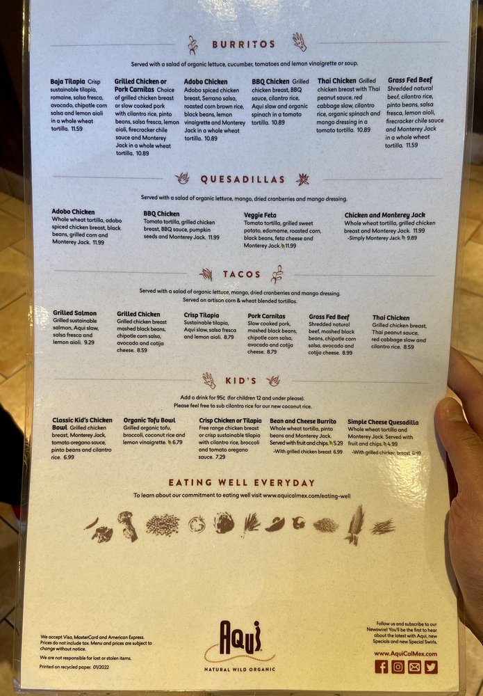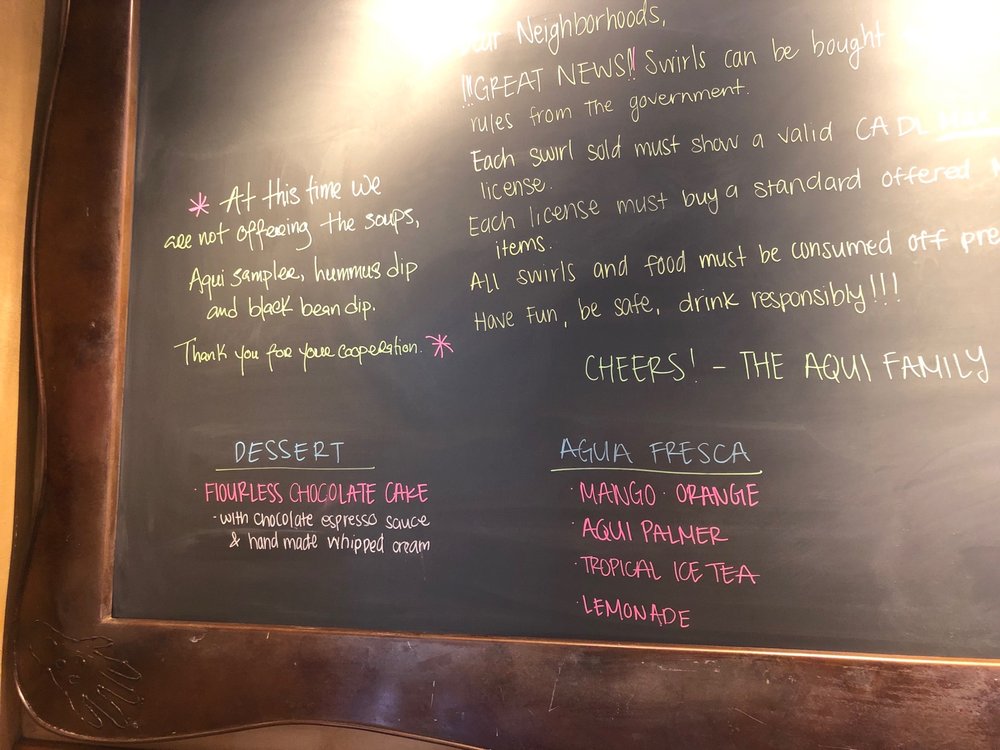 Introducing Aqui Cal-Mex, a fusion of fresh Californian cuisine with rich Mexican flavors. Located in Cupertino, Aqui offers a wide range of options for vegans, vegetarians, and meat lovers alike. Their menu includes grilled chicken burritos, Thai burritos, grilled steak burritos, and salmon dishes, all prepared with fresh and healthy ingredients. Customers praise the welcoming staff, efficient service, and pleasant outdoor seating experience. The restaurant's ambiance is enhanced by lighting and heaters, making it a perfect spot for social gatherings. Don't miss their signature drinks like Sangria Swirl and Bramble Berry Swirl, known for their deliciousness and strength. Aqui Cal-Mex stands out for its balance of nutrients and flavors, offering a unique dining experience that caters to various preferences. Whether you're looking for a casual lunch, dinner, or happy hour spot, Aqui Cal-Mex is a must-visit destination.